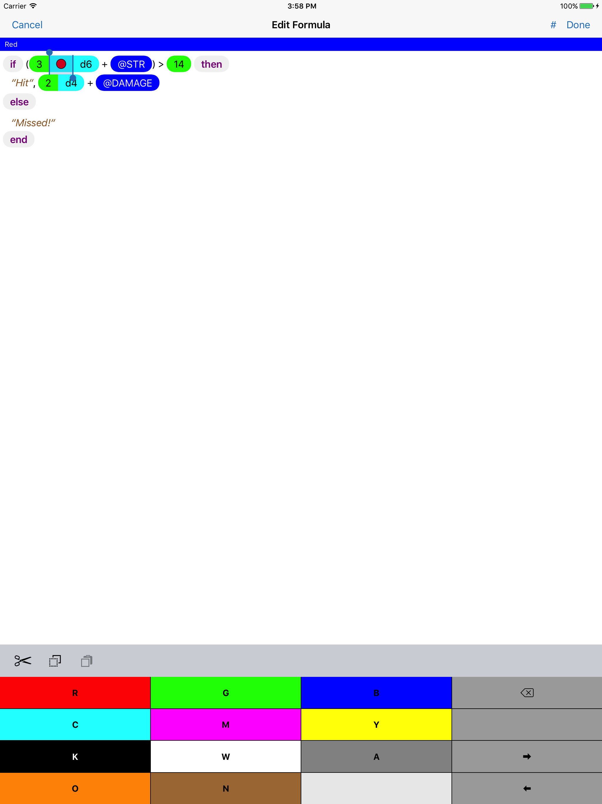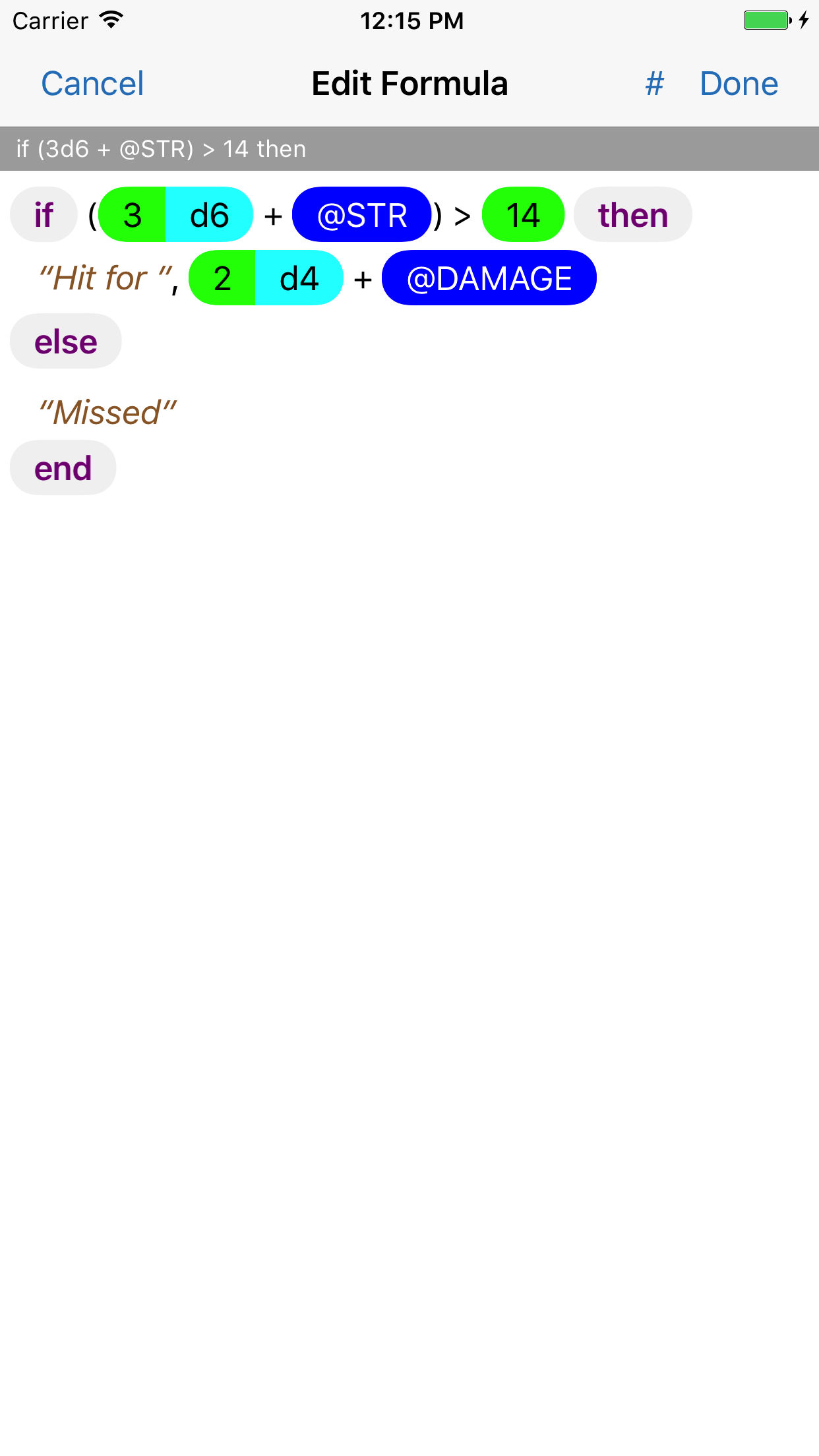 Rolls can be expressed in "ELDERScript" - a very rich dice formula language allowing: