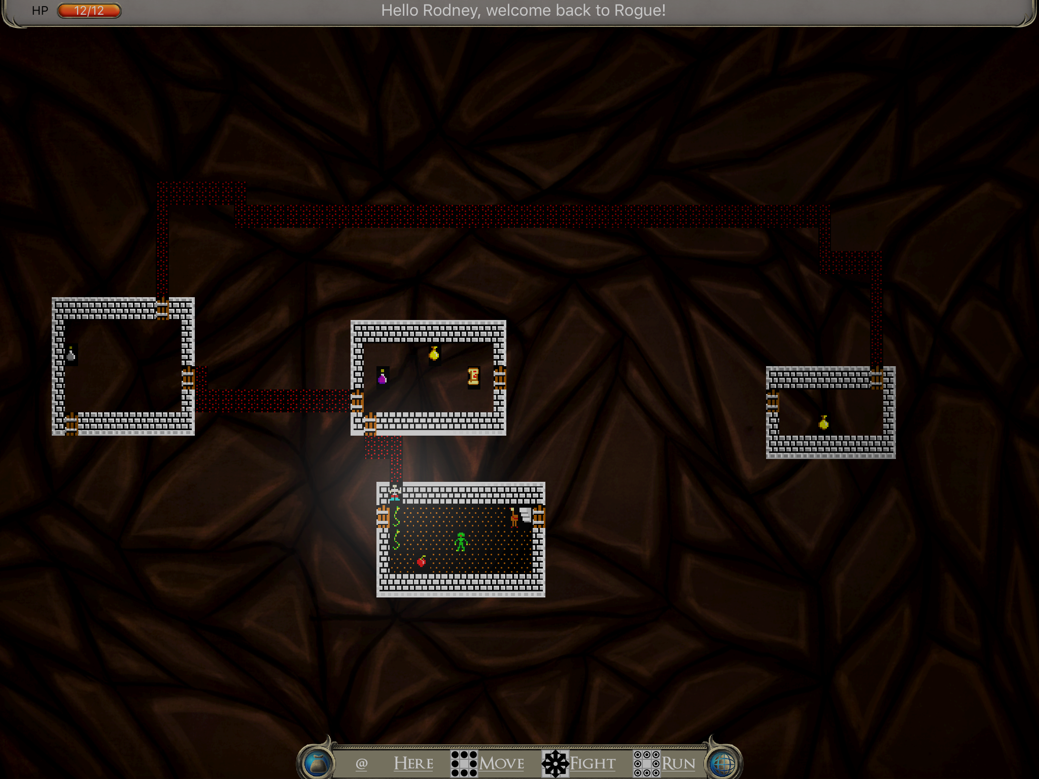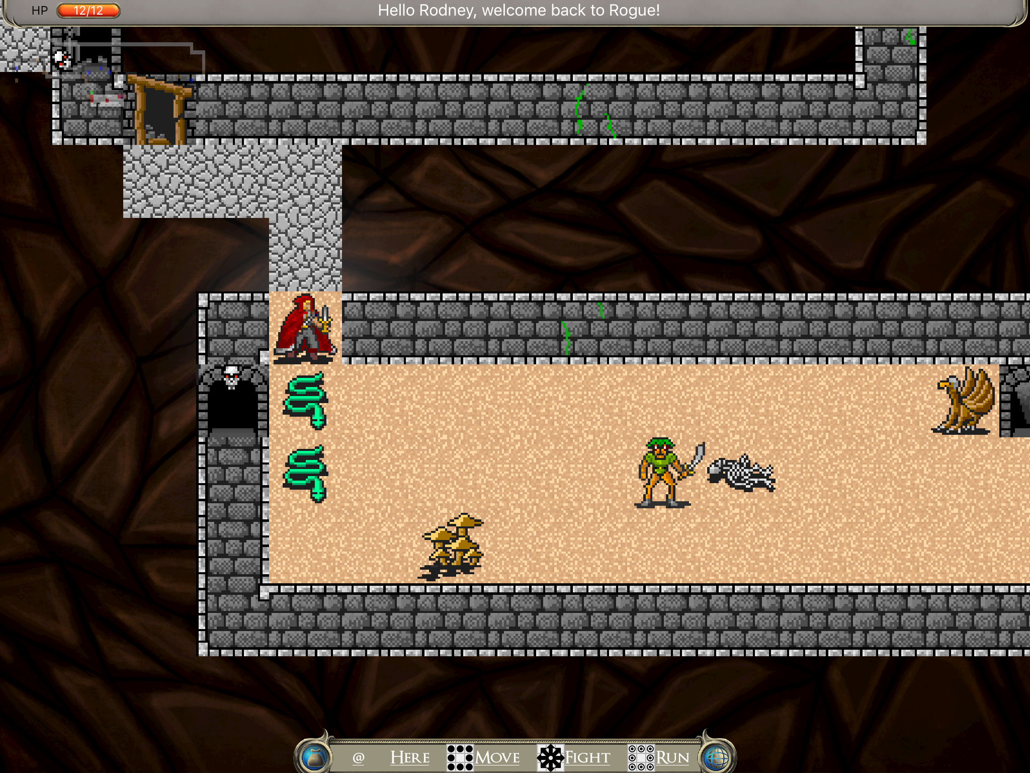 Rogue is a port of the classic game of the same name from days of yore, upgraded to support modern technology. All the gameplay is there (and can be accessed using a BlueTooth keyboard connected to your iPhone, iPad, or appleTV), but a modern touch based graphical user interface is provided (or via the Siri Remote on you appleTV).